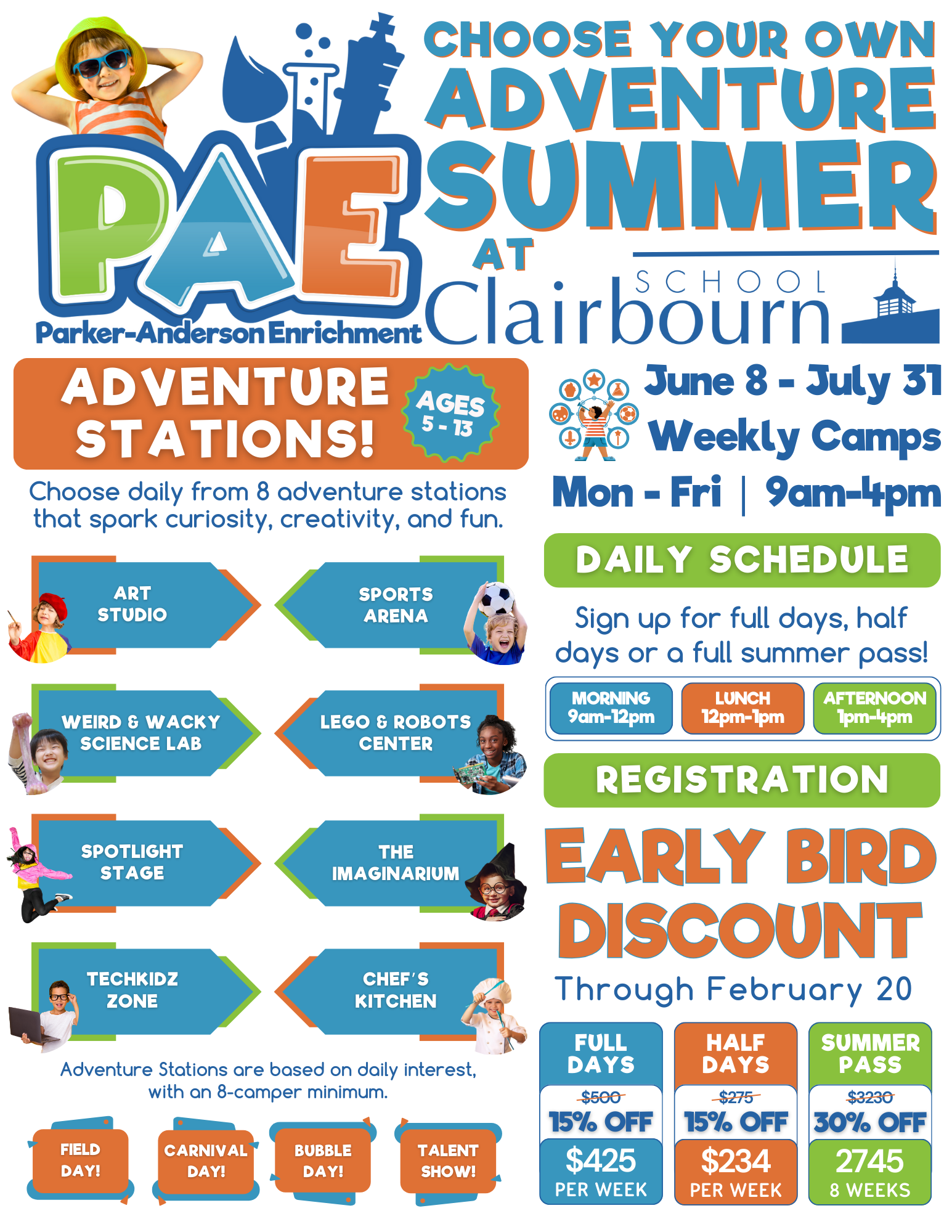 Experience an unforgettable summer with PAE Camps! Tailored for students entering K-6, our camps combine the perfect blend of fun and learning with activities in STEM, arts, sports, cooking, and more. Kids choose their own adventures daily, boosting creativity, confidence, and imagination. Expert instructors ensure a supportive environment where new friendships bloom. Fridays are extra special with Water Day, Carnival Day, talent shows, and more! Join us for a summer of discovery, joy, and endless fun!